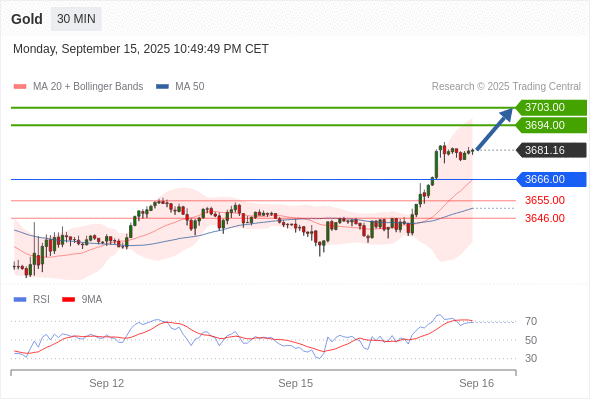 在 3666.00 之上,看涨,目标价位为 3694.00 ,然后为 3703.00 。