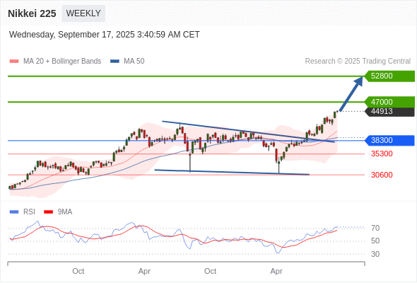 在 38300 之上,看涨,目标价位为 47000 ,然后为 52800 。