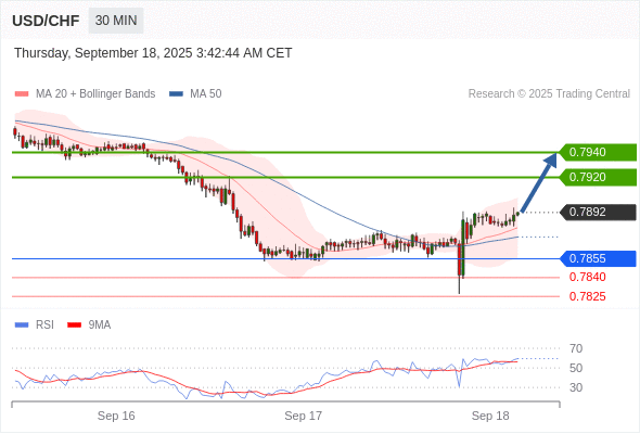 在 0.7855 之上,看涨,目标价位为 0.7920 ,然后为 0.7940 。