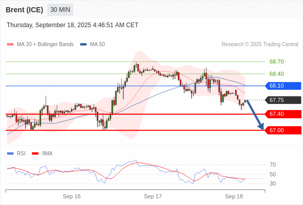交易策略: 在 68.10 之下,看跌,目标价位为 67.40 ,然后为 67.00 。