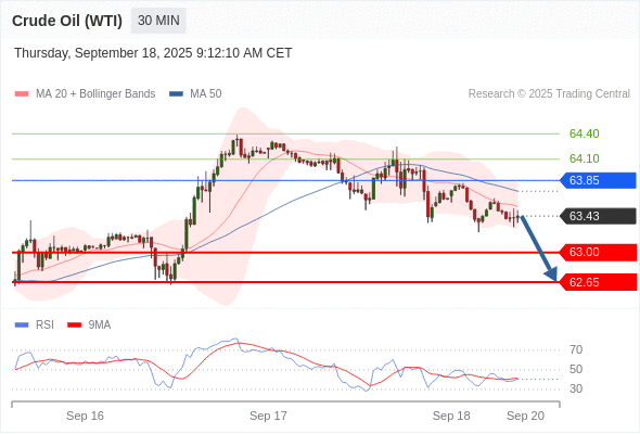 交易策略: 在 63.85 之下,看跌,目标价位为 63.00 ,然后为 62.65 。