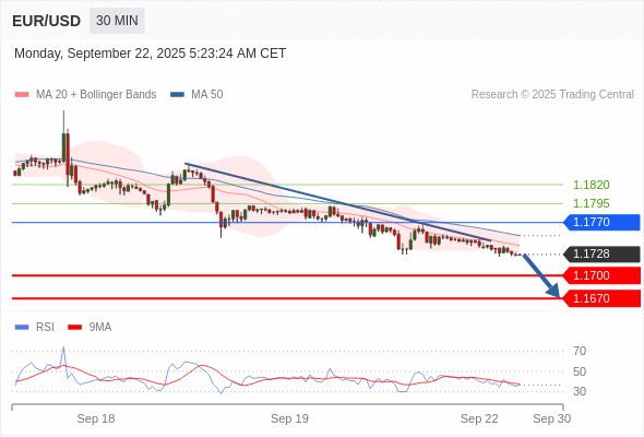 交易策略: 在 1.1770 之下,看跌,目标价位为 1.1700 ,然后为 1.1670 。
