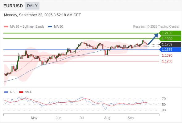 在 1.1575 之上,看涨,目标价位为 1.1920 ,然后为 1.2100 。