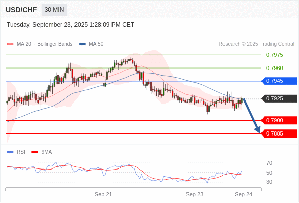 在 0.7945 之下,看跌,目标价位为 0.7900 ,然后为 0.7885 。