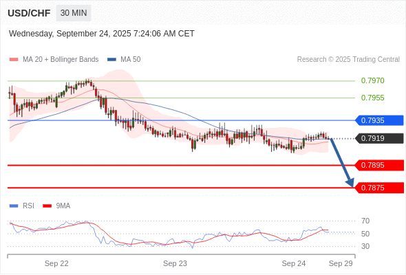 美元/瑞郎 当日内: 短期关键阻力位在0.7935。