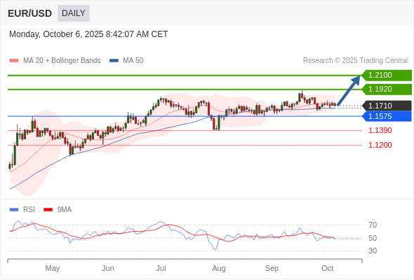 在 1.1575 之上,看涨,目标价位为 1.1920 ,然后为 1.2100 。
