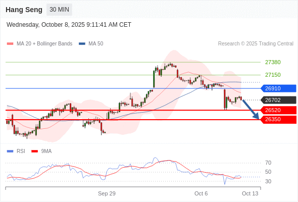 在 26910 之下,看跌,目标价位为 26520 ,然后为 26350 。