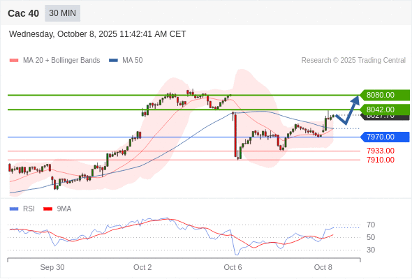 在 7970.00 之上,看涨,目标价位为 8042.00 ,然后为 8080.00 。