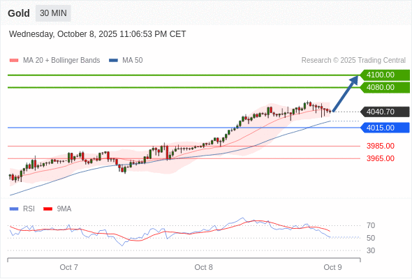在 4015.00 之上,看涨,目标价位为 4080.00 ,然后为 4100.00 。