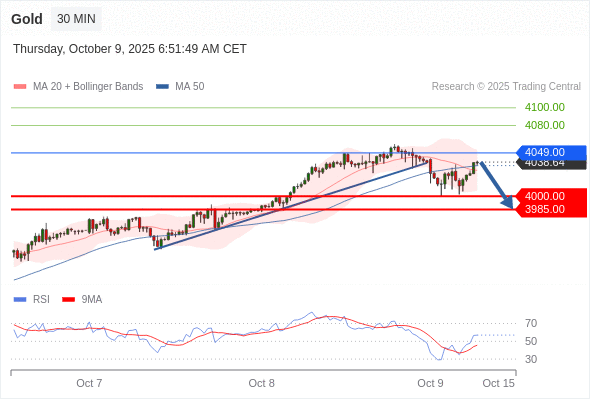 在 4049.00 之下,看跌,目标价位为 4000.00 ,然后为 3985.00 。