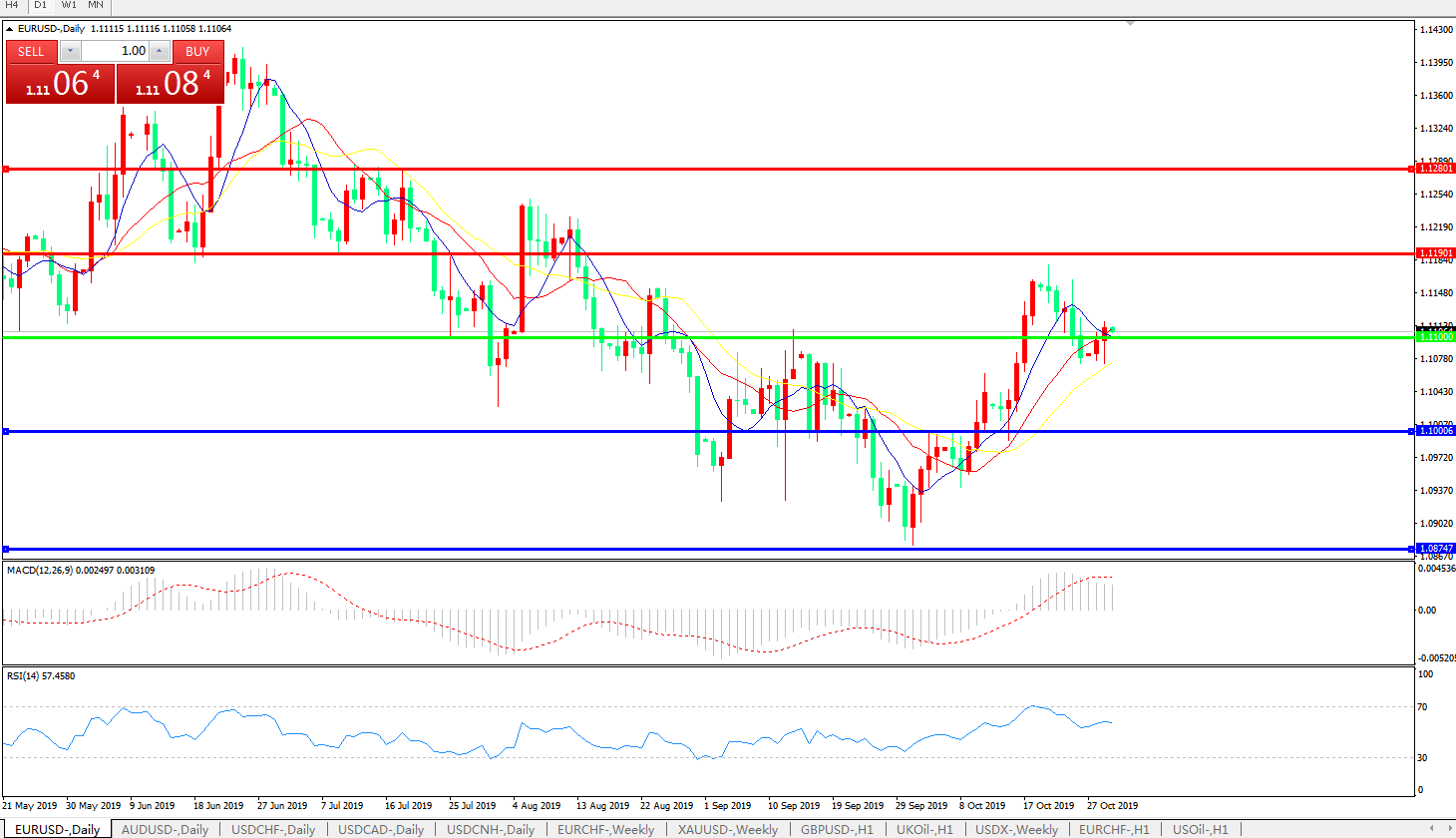 交易策略:1.1100上方看涨,目标1.1190、1.1280