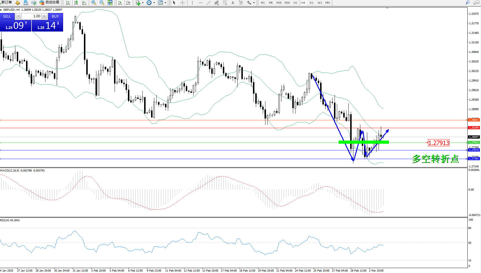 交易策略:1.27913上方看涨,目标1.28389、1.26841