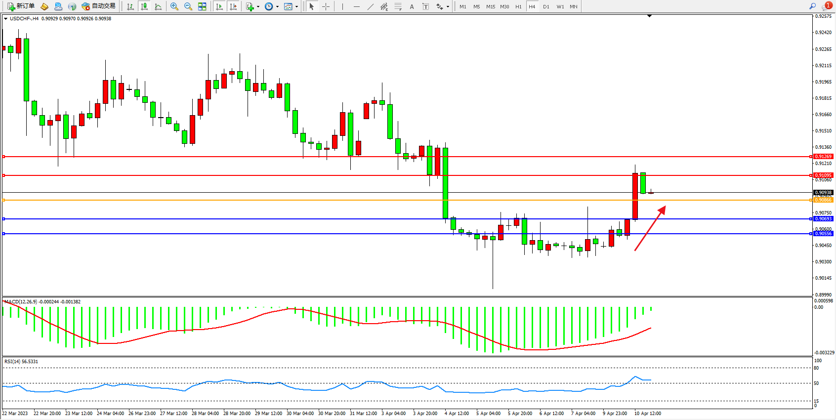 USDCHF:震荡上行 USDCHF  XAUUSD