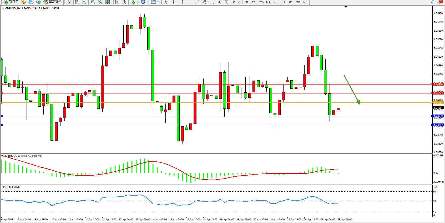 交易策略:1.24131下方看跌,目标1.23930 1.23797