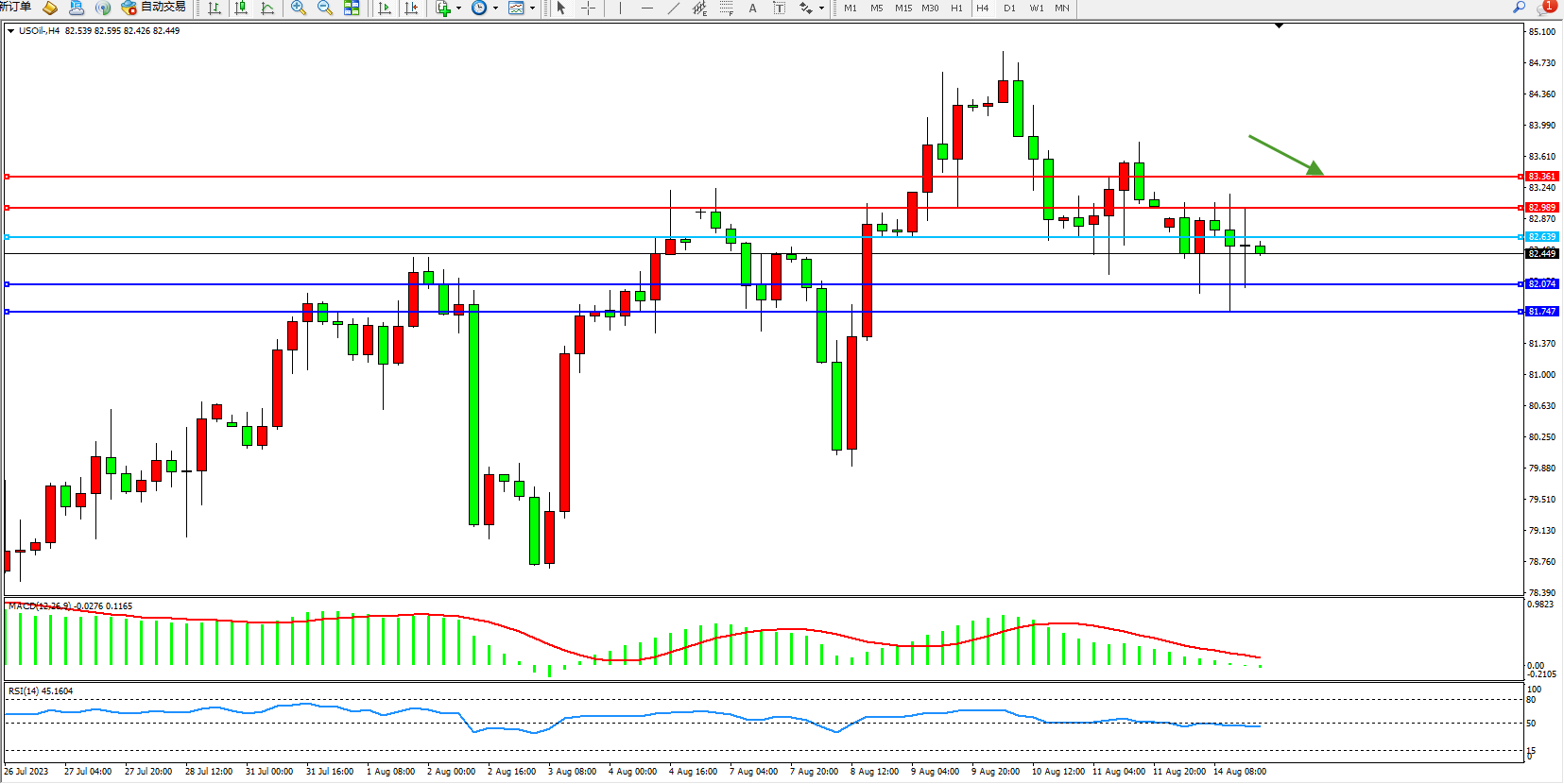 交易策略:82.639下方看跌,目标82.074  81.747